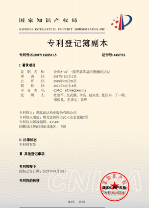 公司擁有一支高素質科研隊伍,具備專業(yè)而高效的研發(fā)能力。近幾年,共取得科技成果30項,其中9項獲國家發(fā)明專利,2項獲湖北省科技進步獎,開發(fā)新產品8個,綠色合成、手性合成和催化等技術引領行業(yè)發(fā)展。主要銷往歐美、日本、韓國、中東、印度等40多個國家和地區(qū)。